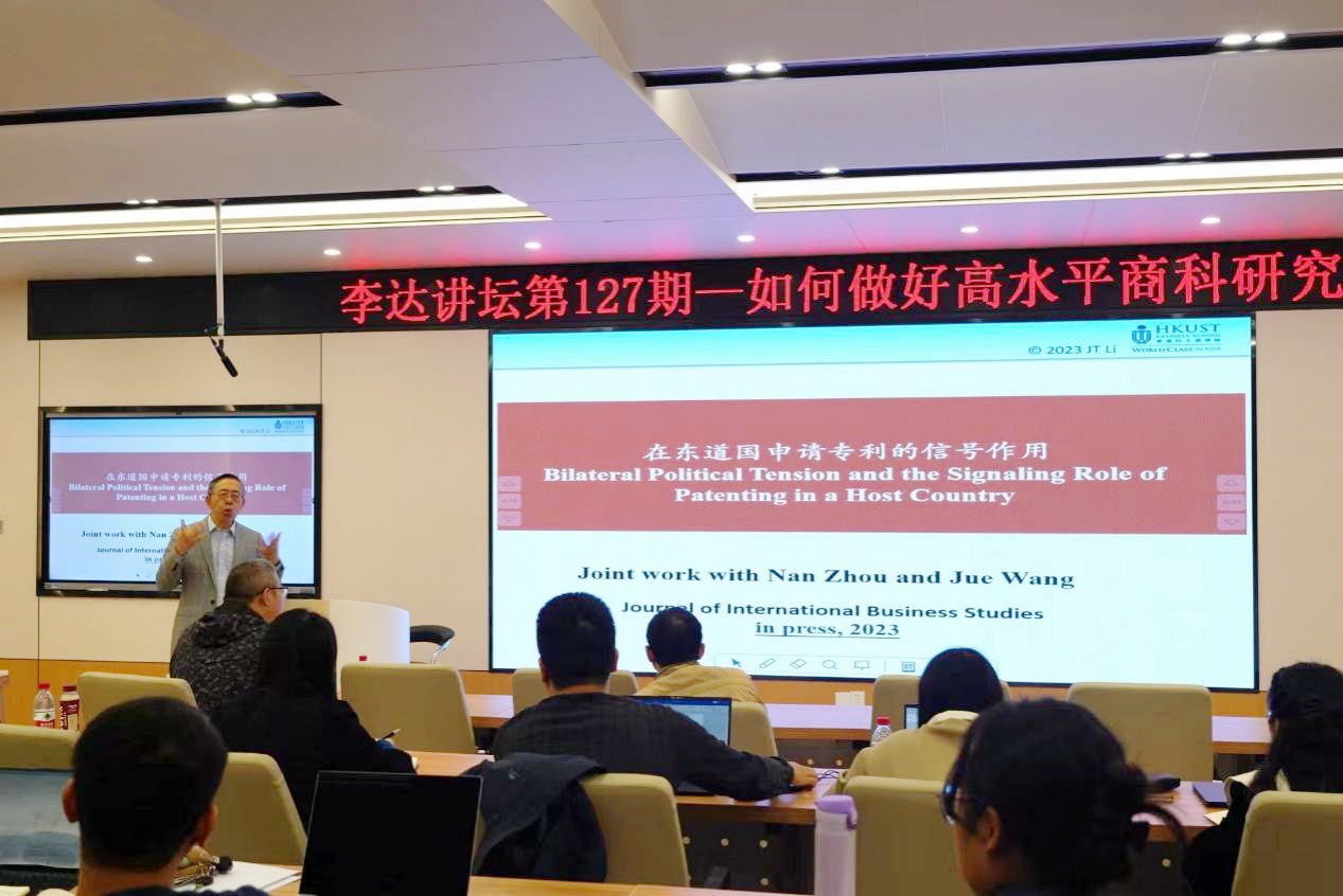 第127期“李达讲坛”,以“如何做好高水平商科研究”为题作学术报告。讲坛由学院院长朱帮助教授主持,色中色