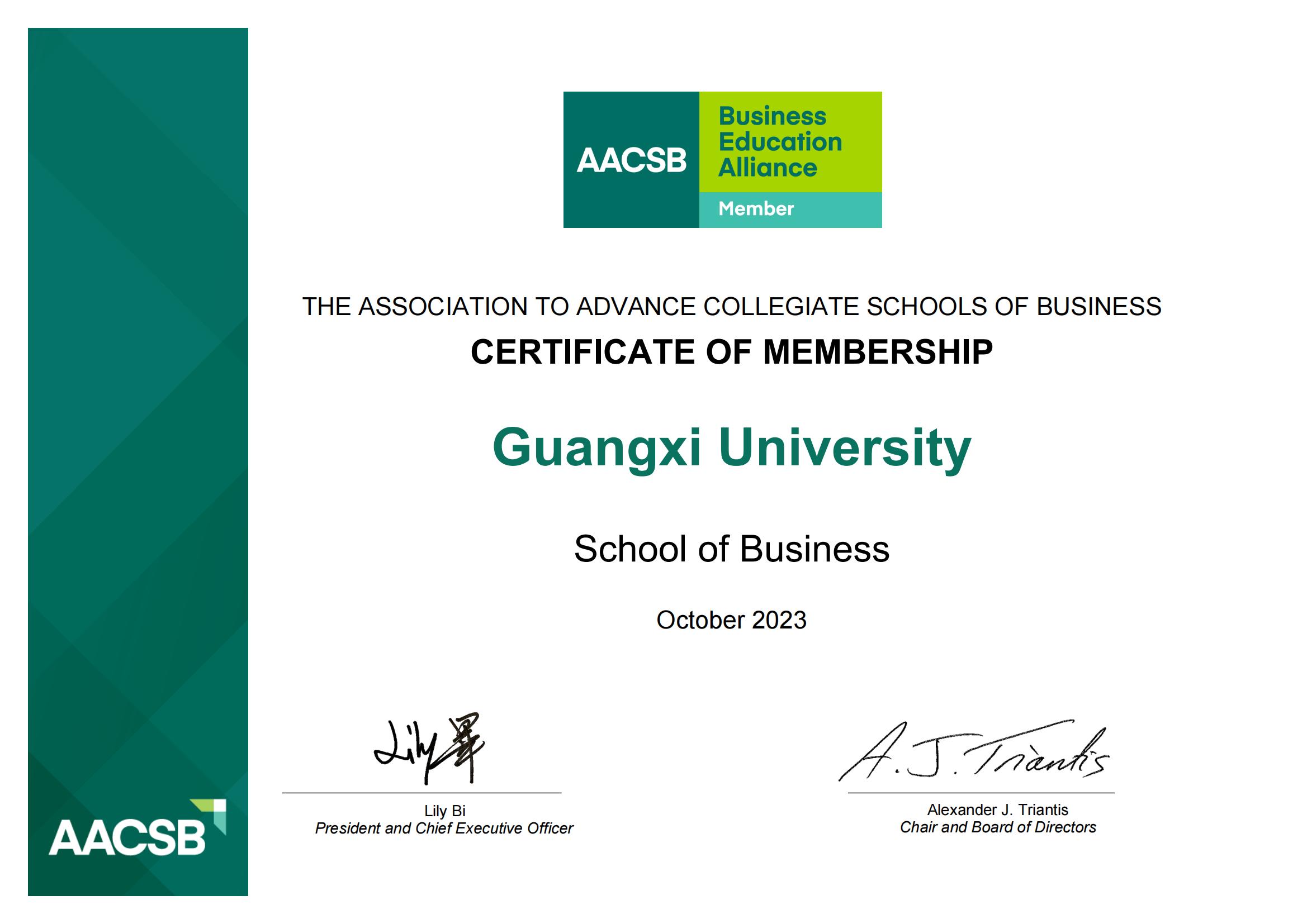 2023年10月7日,国际商学院协会(The Association to Advance Collegiate Schools of Business,简称为AACSB)正式接纳色中色